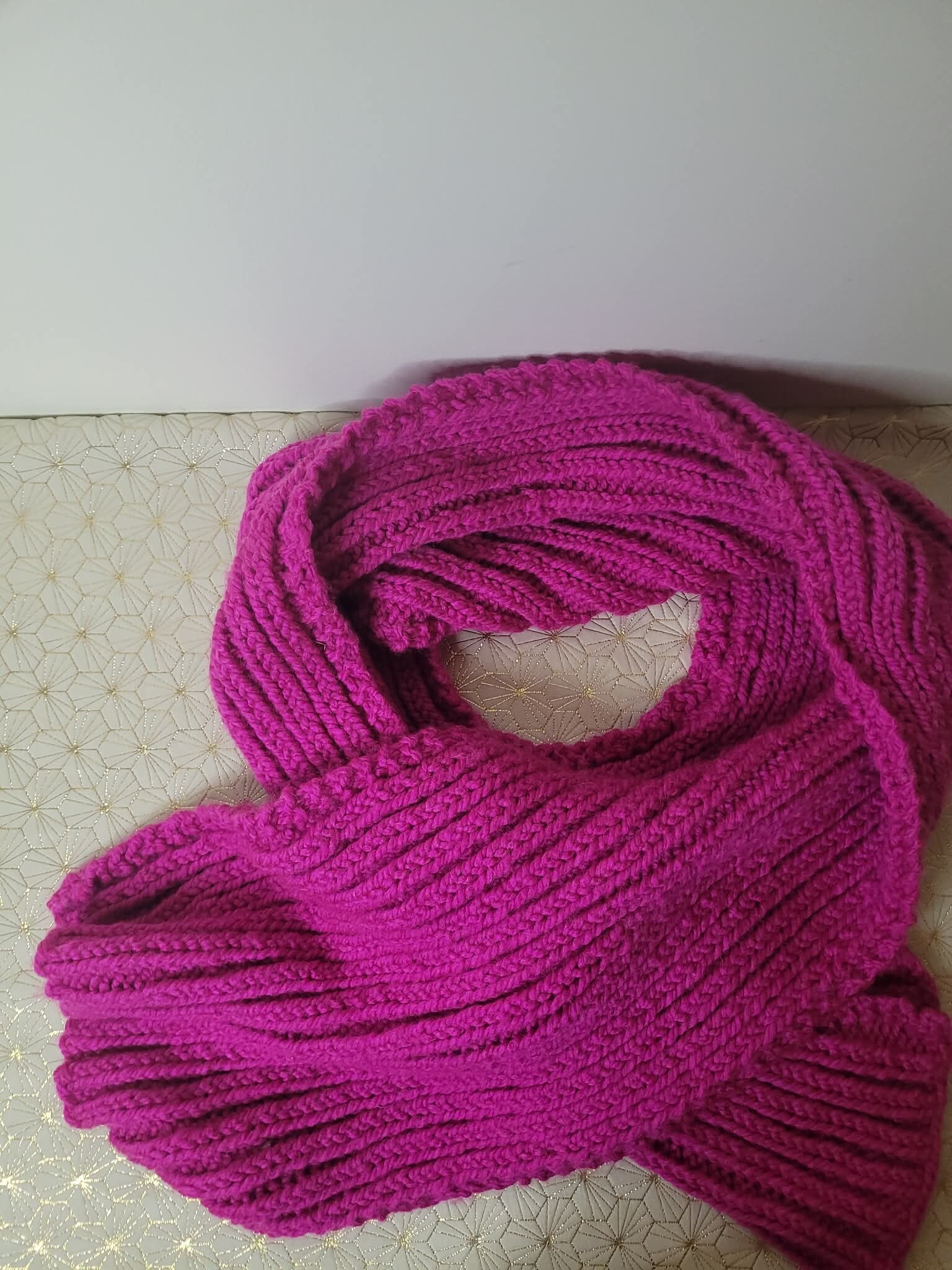 Grande écharpe rose acrylique rose fait main 148 cm